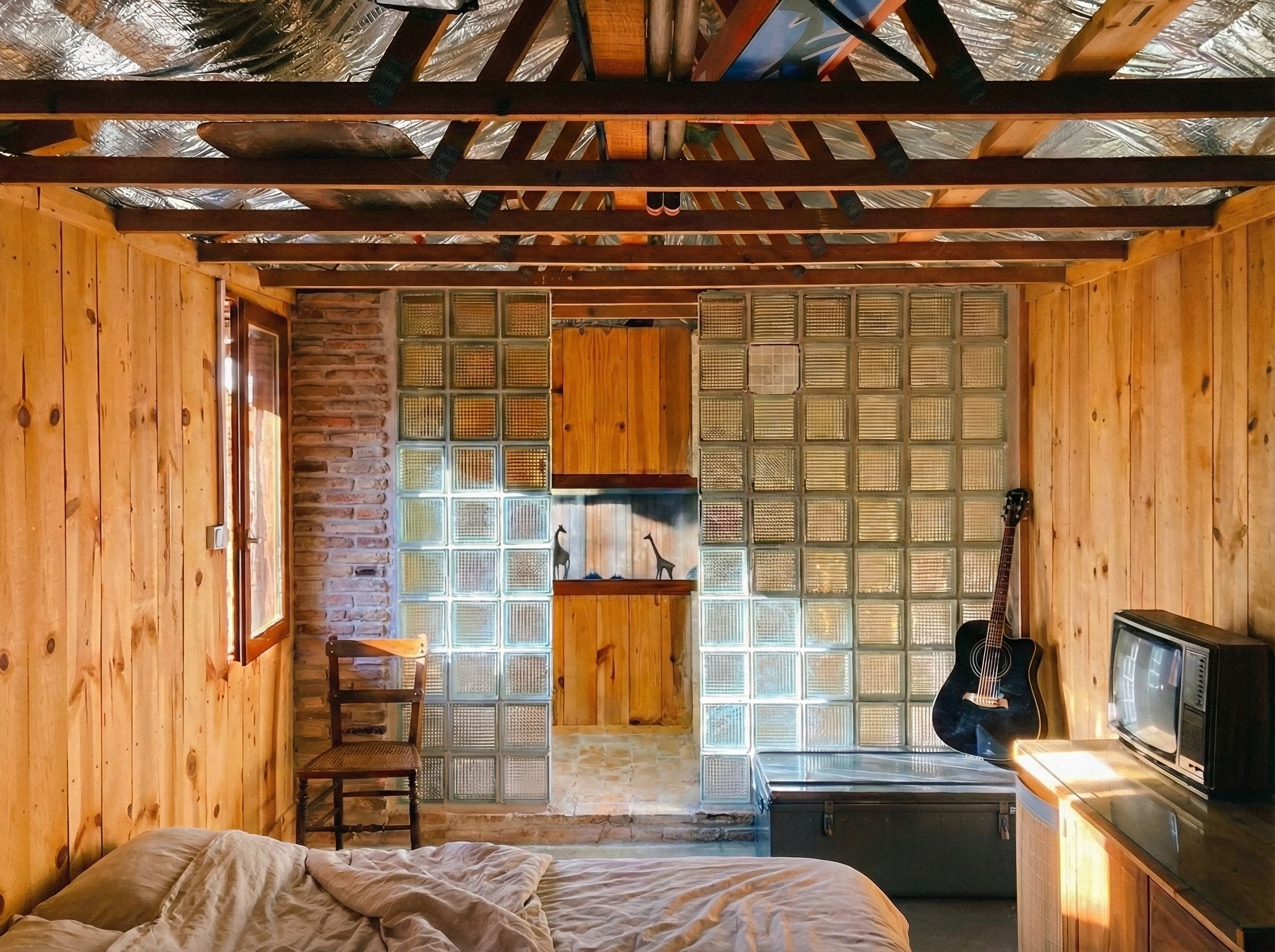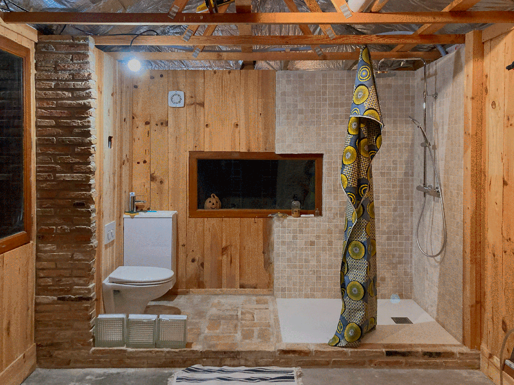 Transformation d’un cabanon de stockage en dépendance à Taussat-les-Bains. Création d’ouvertures et isolation, ajout d’une salle d’eau.