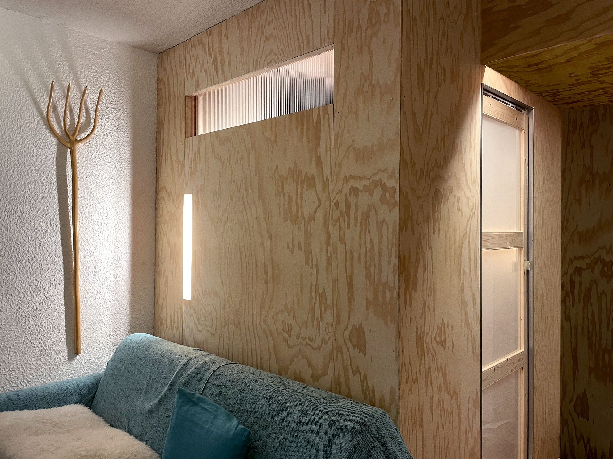 Rénovation complète d’un deux pièces en Vallée d’Aure. Cloisonnement en ossature bois.