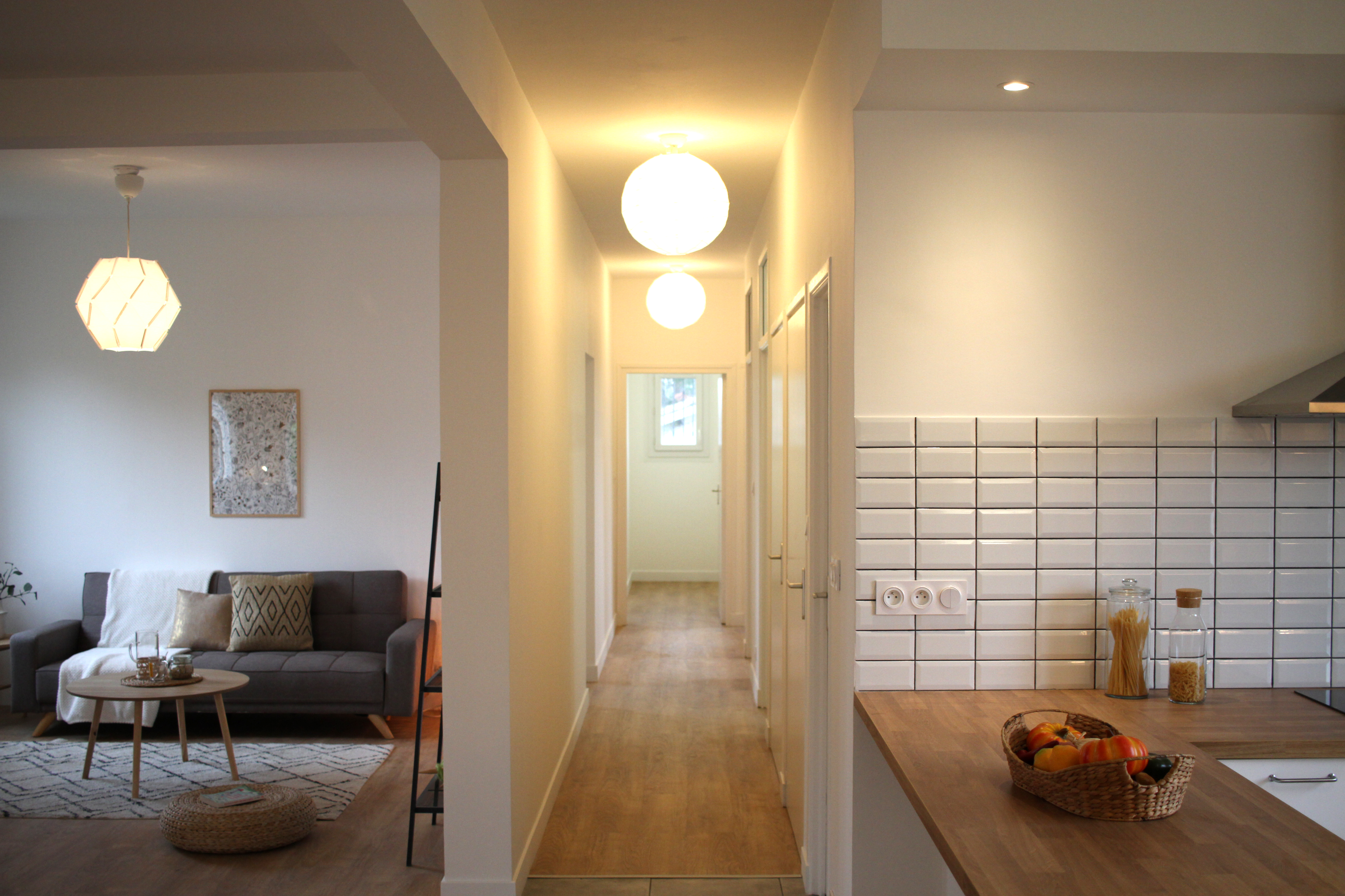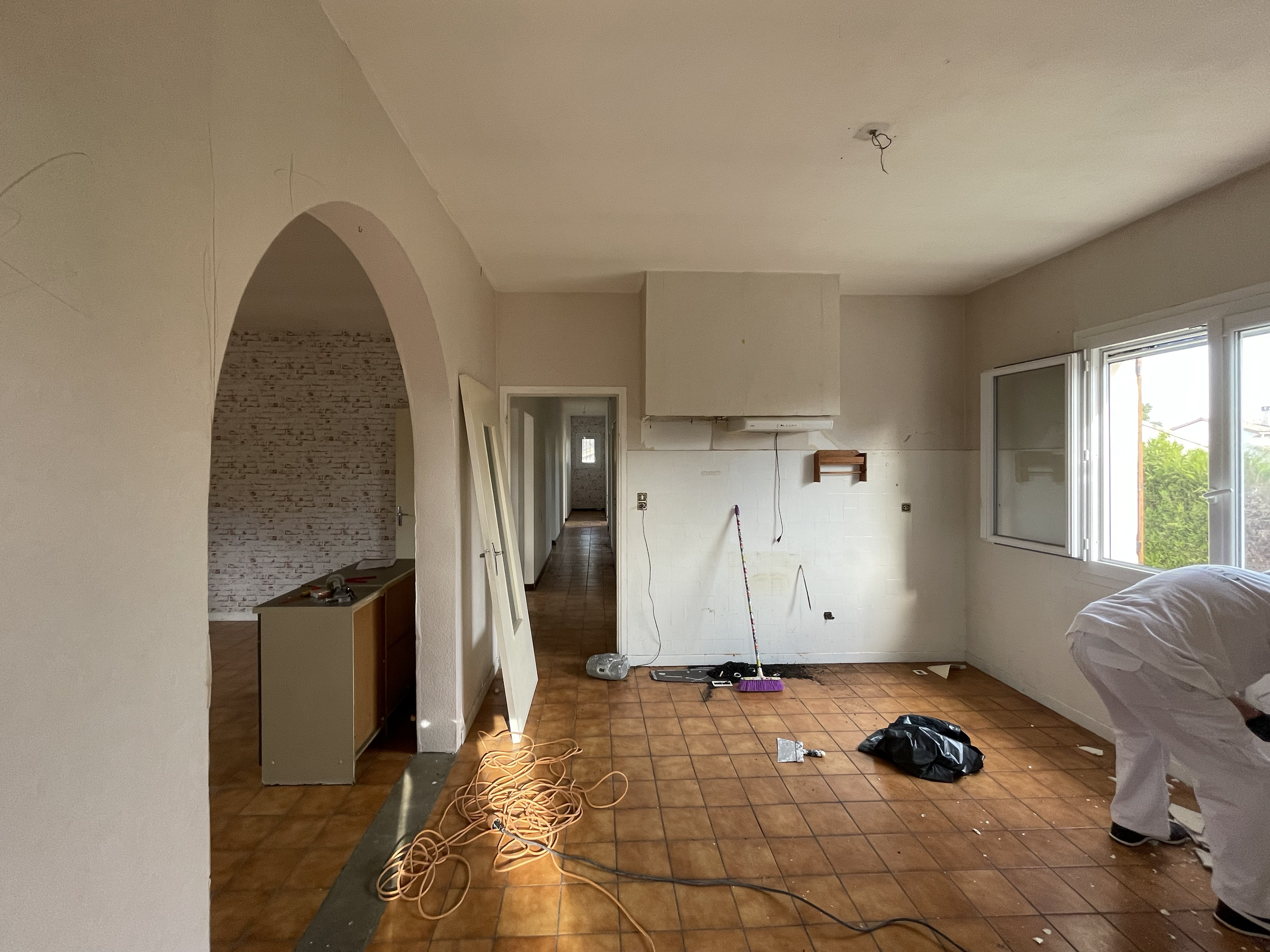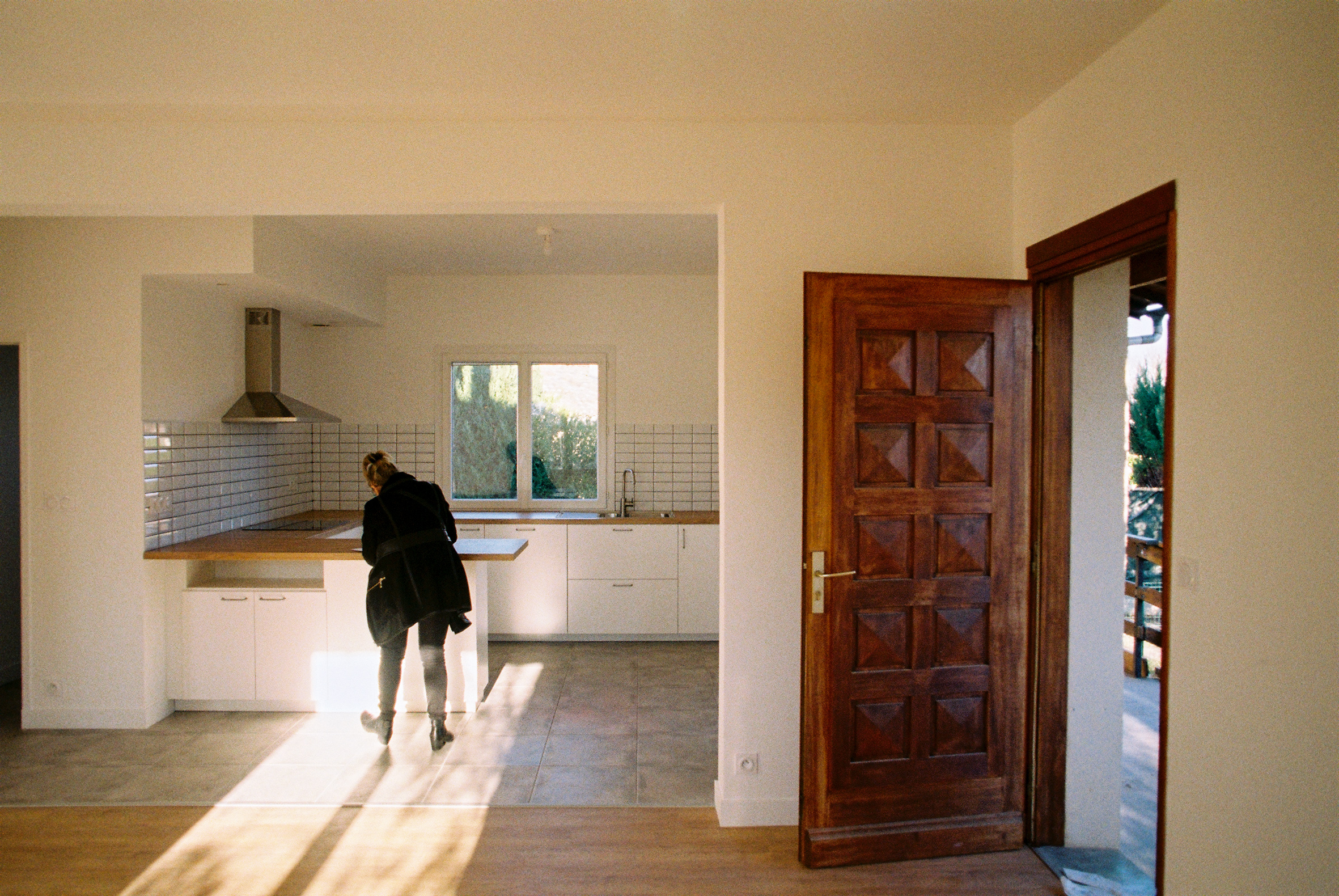 Rénovation complète d’une maison des années 1980 dans la banlieue de Toulouse. Agrandissement du salon et de la cuisine.